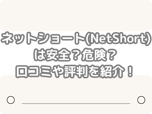 ネットショート(NetShort)は安全?危険?口コミや評価評判を紹介!